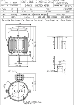 EP7/52C TECO Westinghouse 7 1/2 Hp 3600 RPM 213TC Cast Iron 230/460V TEFC Severe Duty 3-Phase Motor