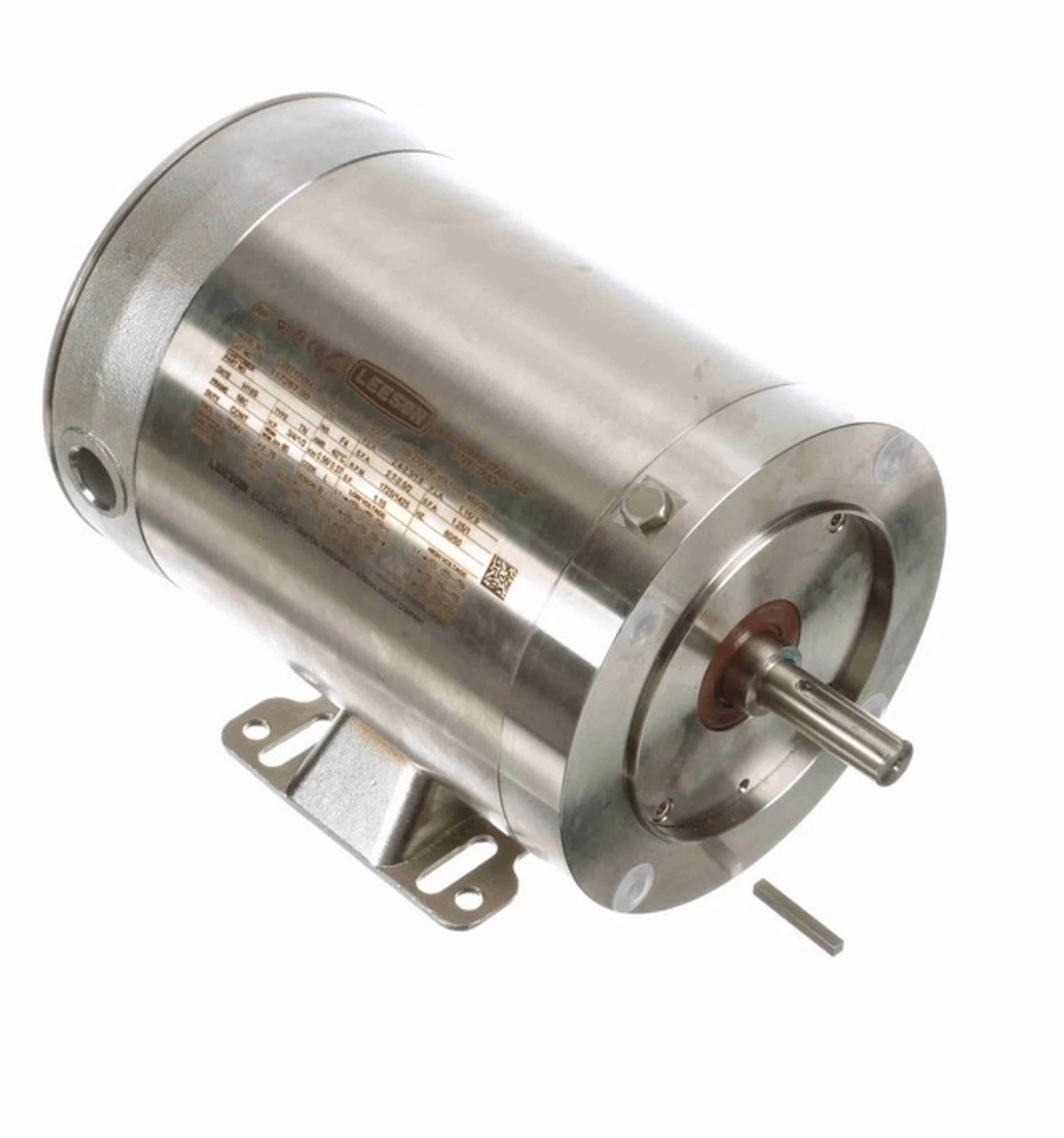 Premium Stainless Steel Wash Duty motor with a C-face mount for use in wet environments requiring the addition of strong corrosive disinfectants . Bolt holes are 3 3/4″ on center measured across the shaft. Wiring diagram on motor name plate. TENV = Totally Enclosed Non-Ventilated. 117267.00