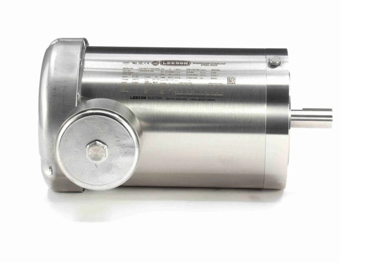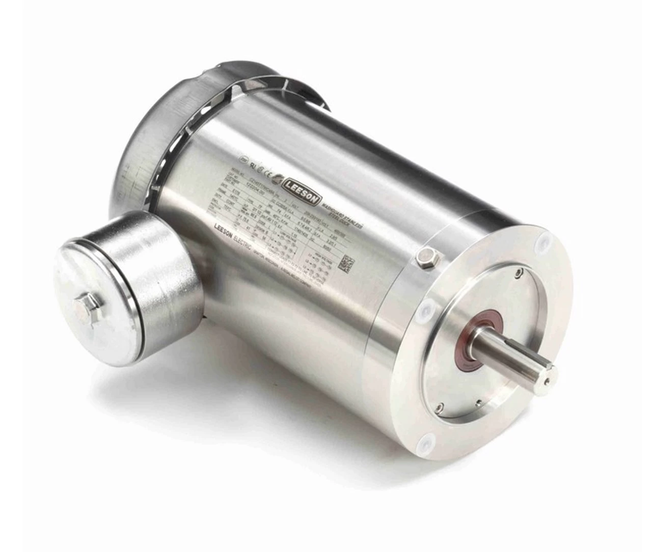Premium Stainless Steel Wash Duty motor with a C-face mount for use in wet environments requiring the addition of strong corrosive disinfectants . Bolt holes are 3 3/4″ on center measured across the shaft. Wiring diagram on motor name plate. TEFC = Totally Enclosed Fan-Cooled. 122204.00