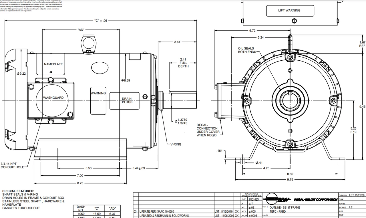 - NEMA S213T frame, C-face, Stainless Steel Keyed Shaft 1 3/8″ Diameter x 3 3/8″