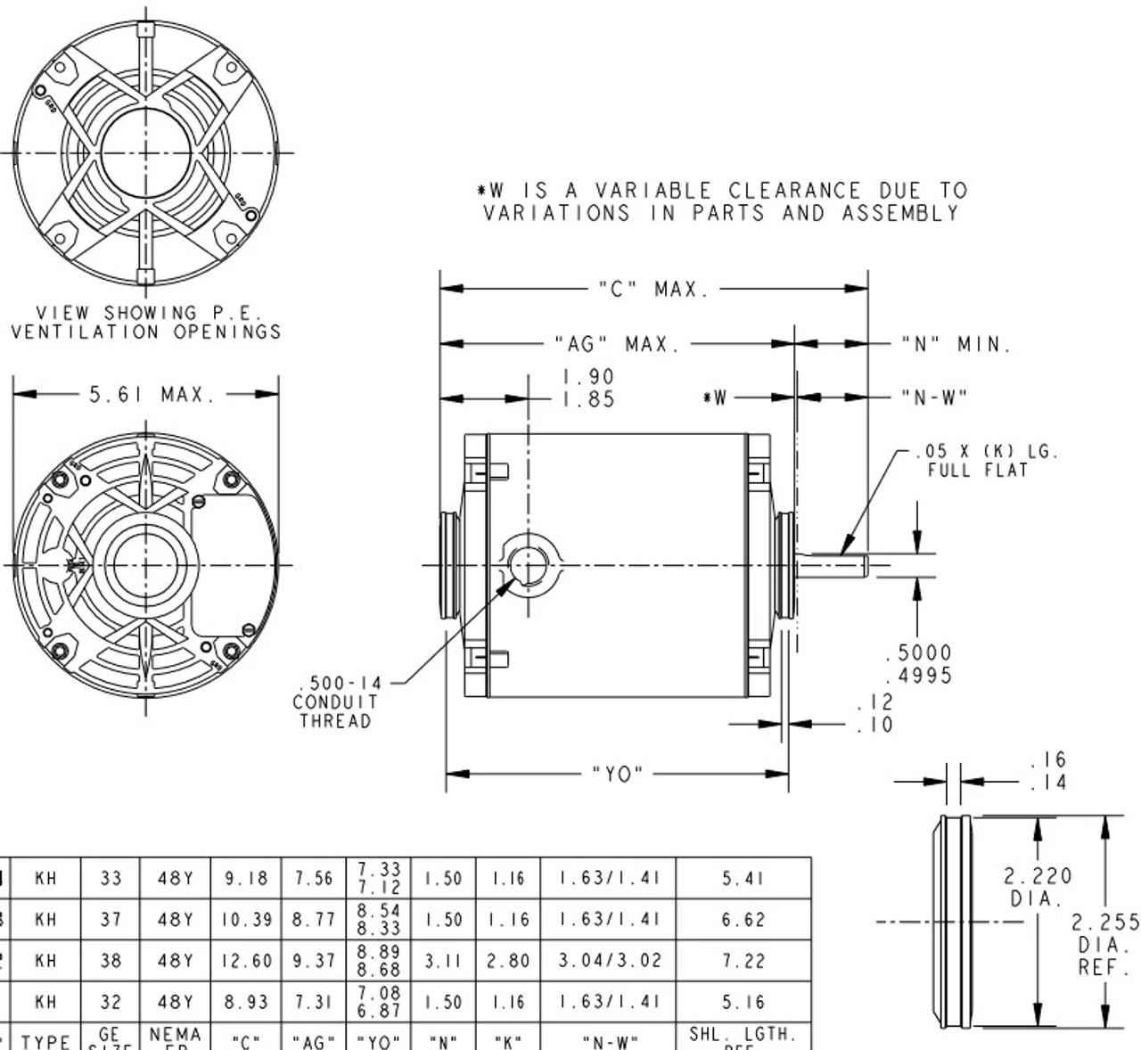 - NEMA 48Y Frame Flat Shaft 1″ x 1/2″ Diameter, 1 speed
