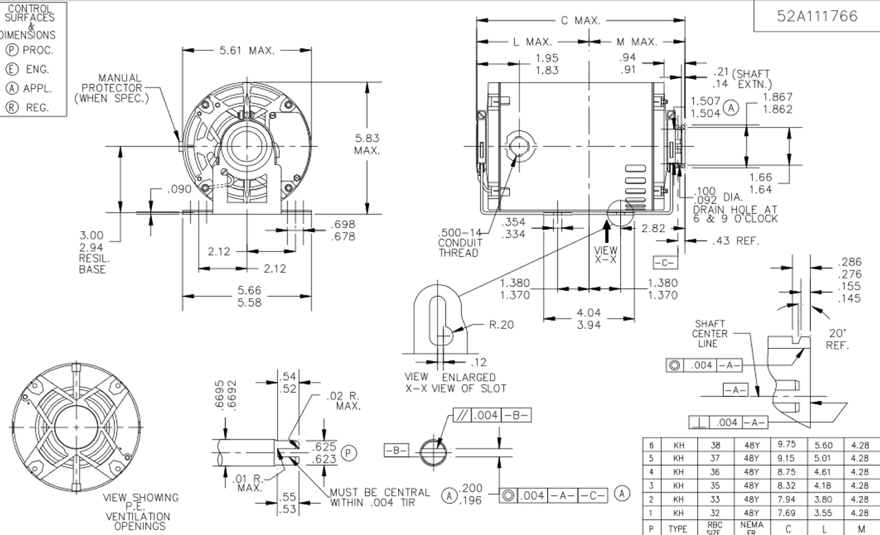- Resilient base, Reversible, Ball Bearings; Class B Insulation