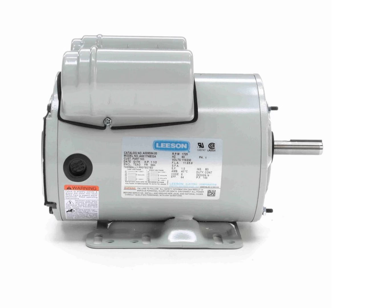 - 1 1/2 hp 1800 RPM, 11.6/5.8 amps 115/230 Volts 60 Hz. Capacitor Start/Run 1-Phase Motor