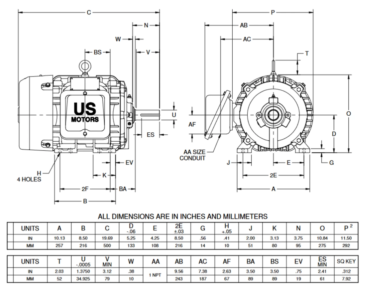- NEMA 213T Cast Iron frame Keyed Shaft 1 3/8″ Diameter x 3 3/8″