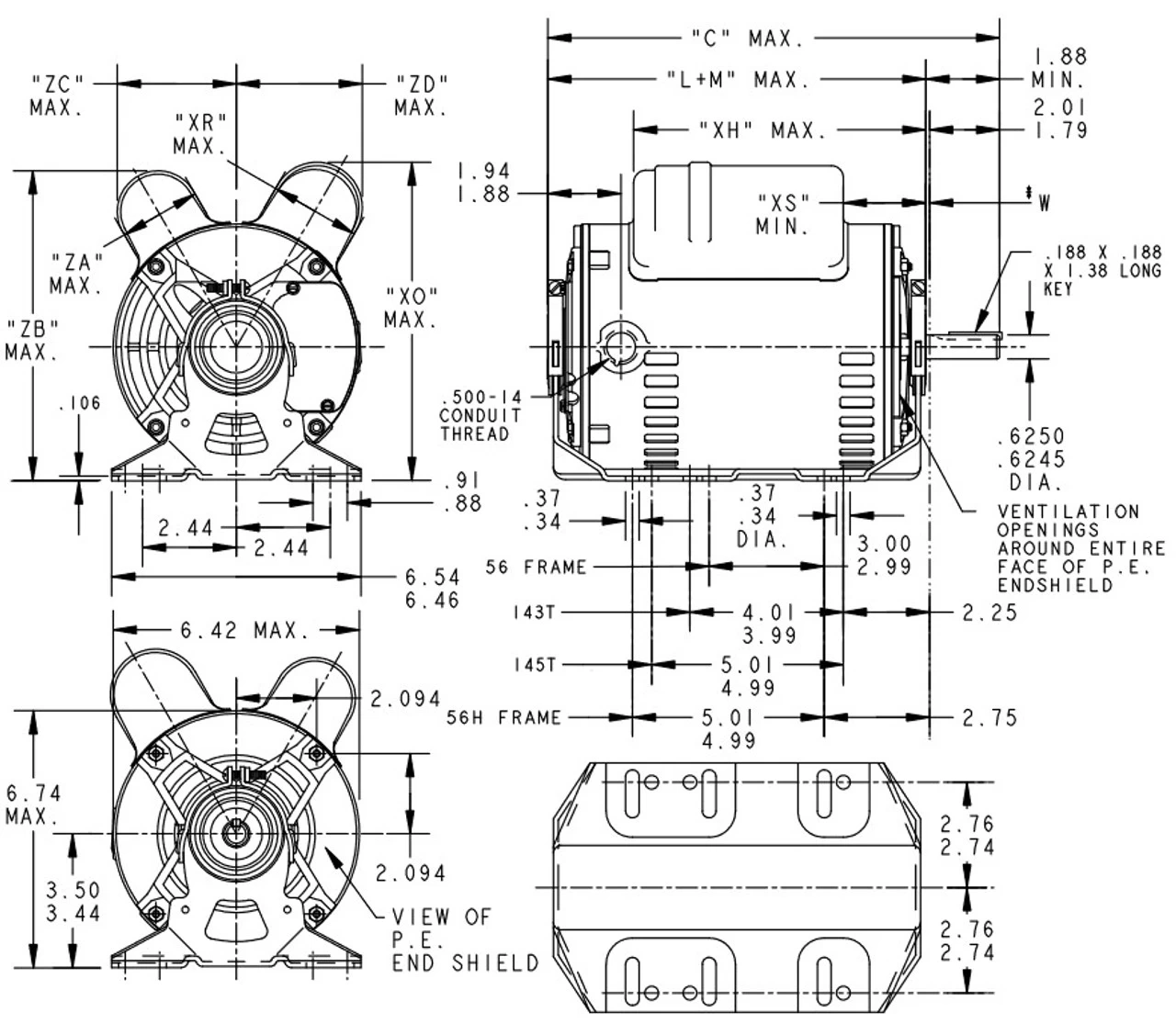 - Resilient Base, Reversible, Ball Bearings, Class B insulation