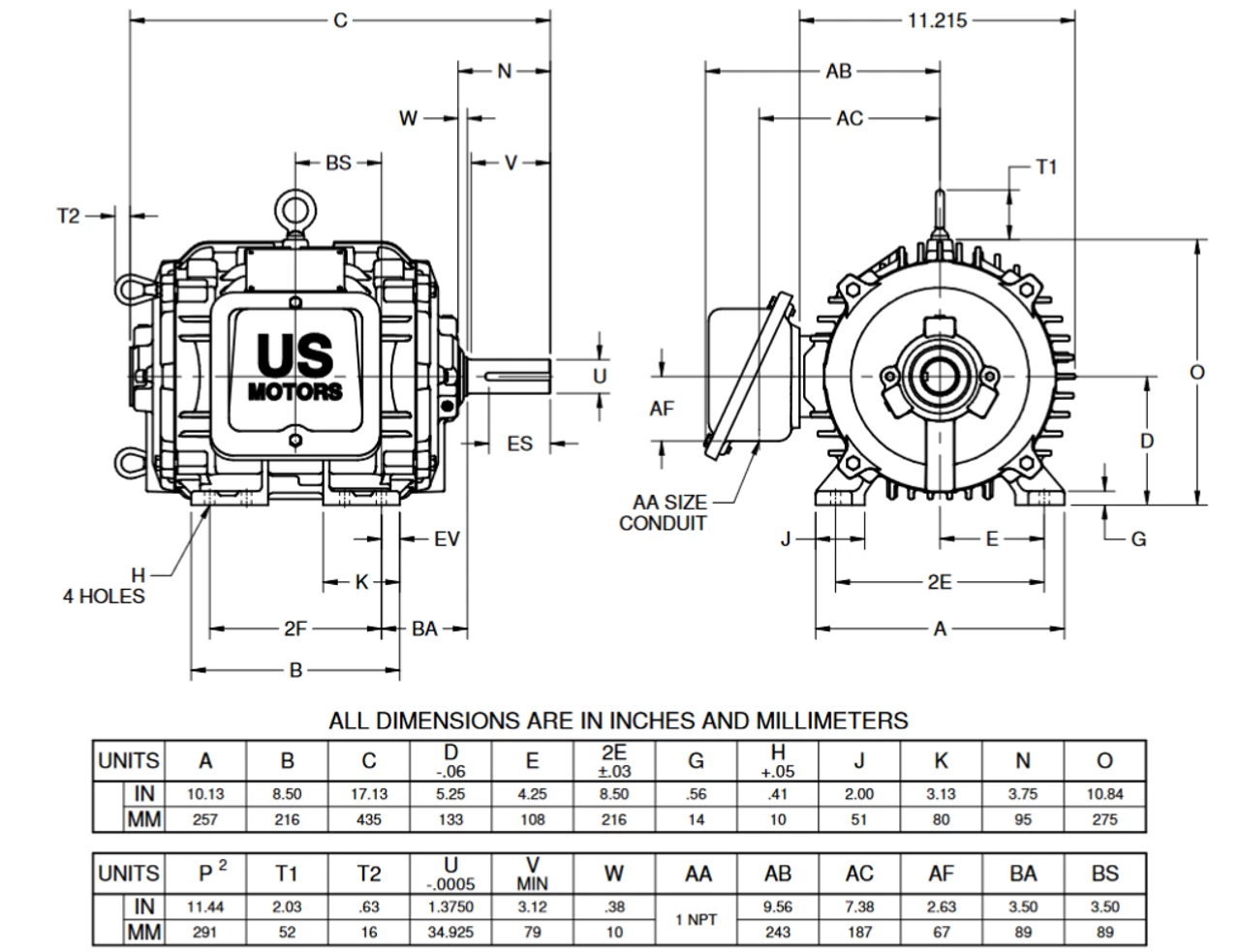 - NEMA 213T Cast Iron frame Keyed Shaft 1 3/8″ Diameter x 3 3/8″