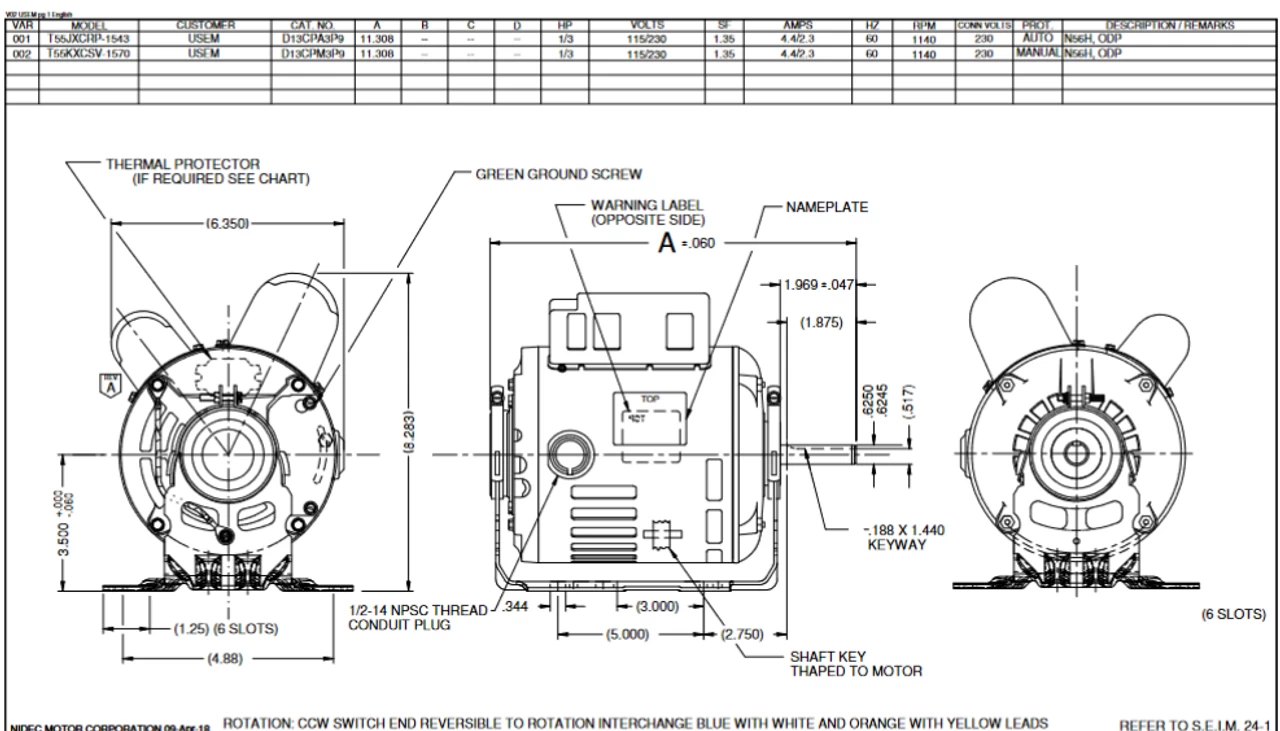 For compressor, pumps, and conveyors needing a motor with high starting torque. Wiring diagram on motor name plate. ODP = Open Drip-Proof. T055CRB1531012B