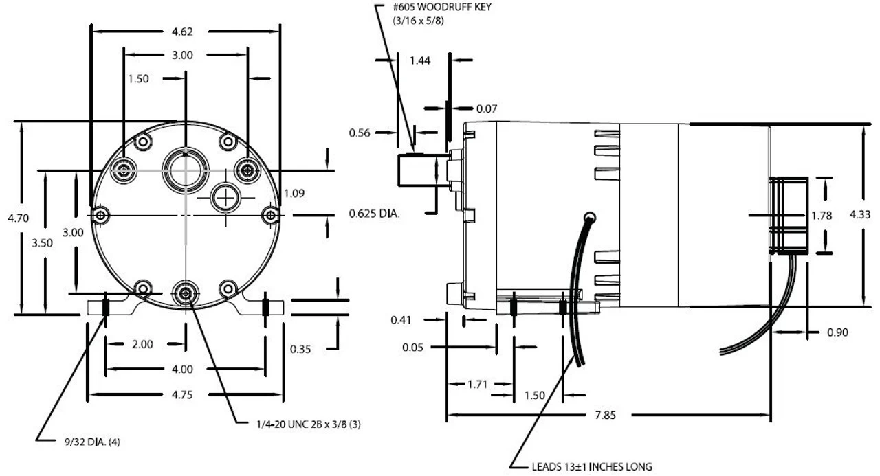 - 1/10 hp, 7 RPM, 2.6 amps, 115 volts 60hz.