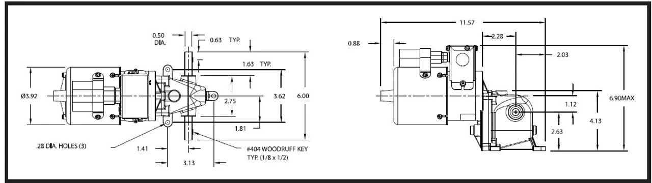- 1/12 hp, 9.5 RPM, 1.2/0.63 amps; 115/230 Volts 50/60hz.