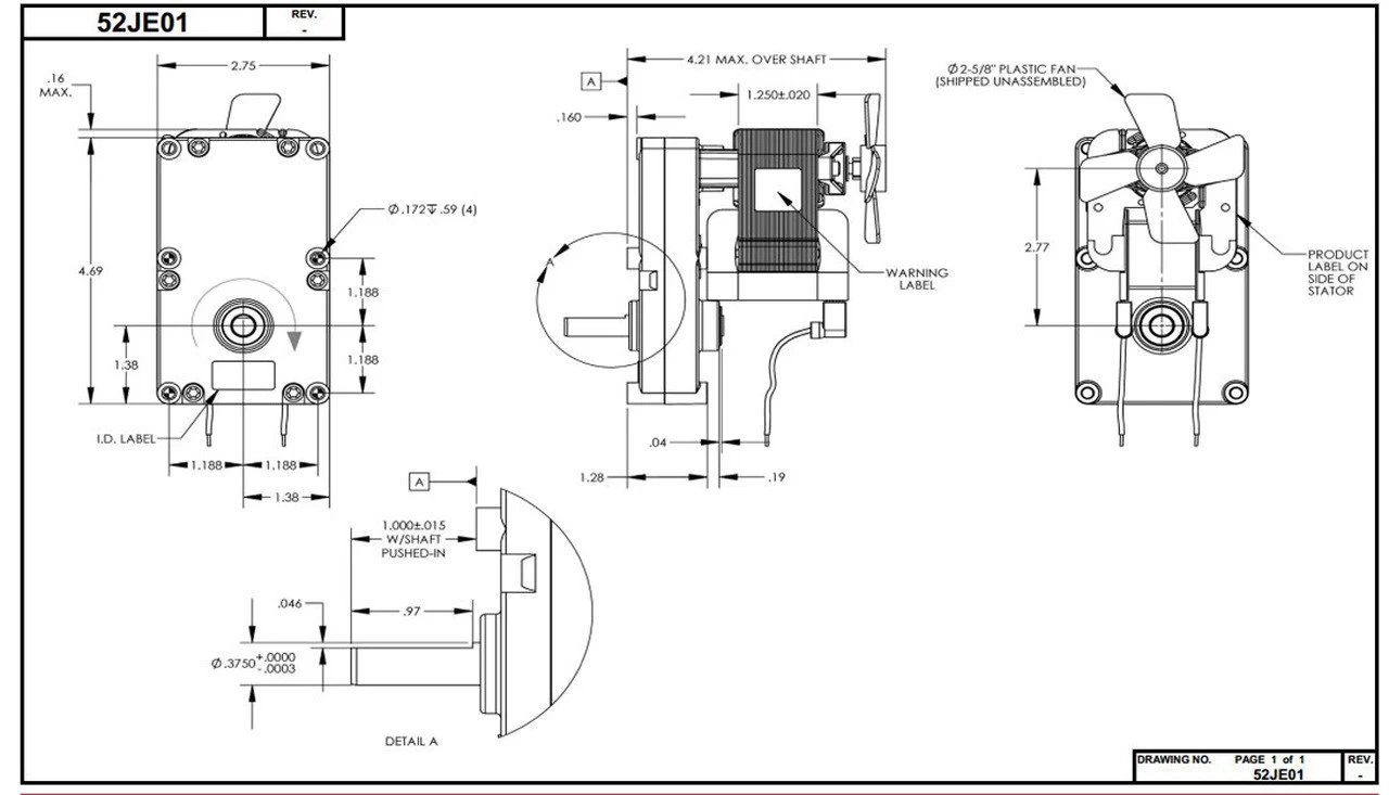 - 1/60 hp, 50 RPM, 1.30 amps, 115V 60hz.