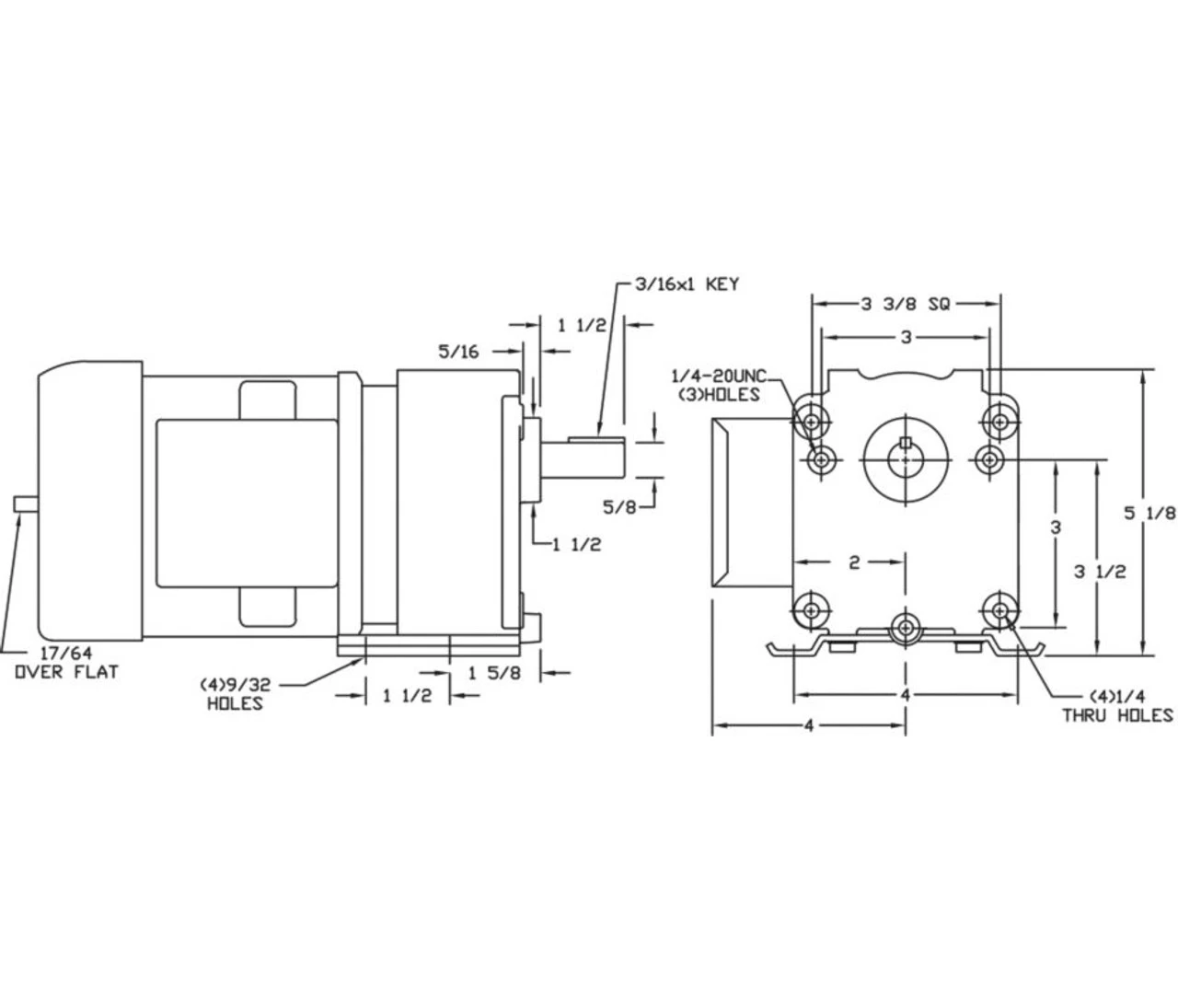 - 1/6 hp, 161RPM, 2.1/1.1 amps, 115/230 volts, 50/60Hz.