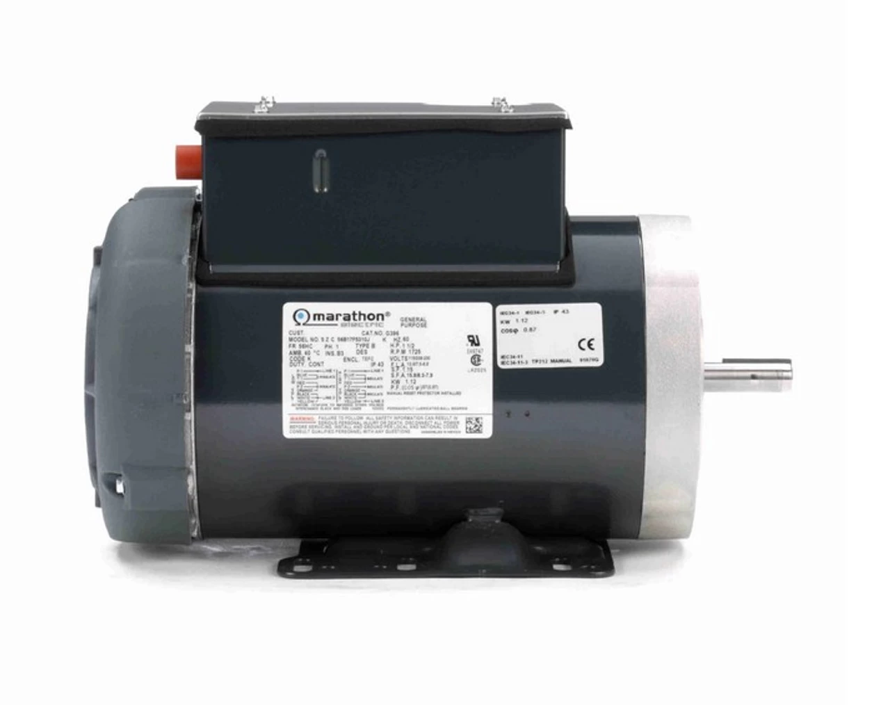 General purpose motor can be used for many applications requiring a single phase electric motor with a C-face mount. Motor has 4 threaded bolt holes on face for mounting a pump or gear-box. Bolt holes are 5 7/8″ on center measured across the shaft. Wiring diagram on motor name plate. TEFC = Totally Enclosed Fan Cooled. 056B17F5310