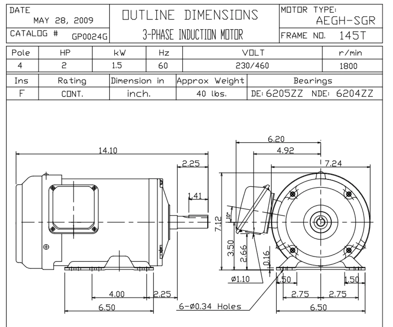 - Inverter Duty Speed Range: 20:1 Variable Torque, 10:1 Constant Torque