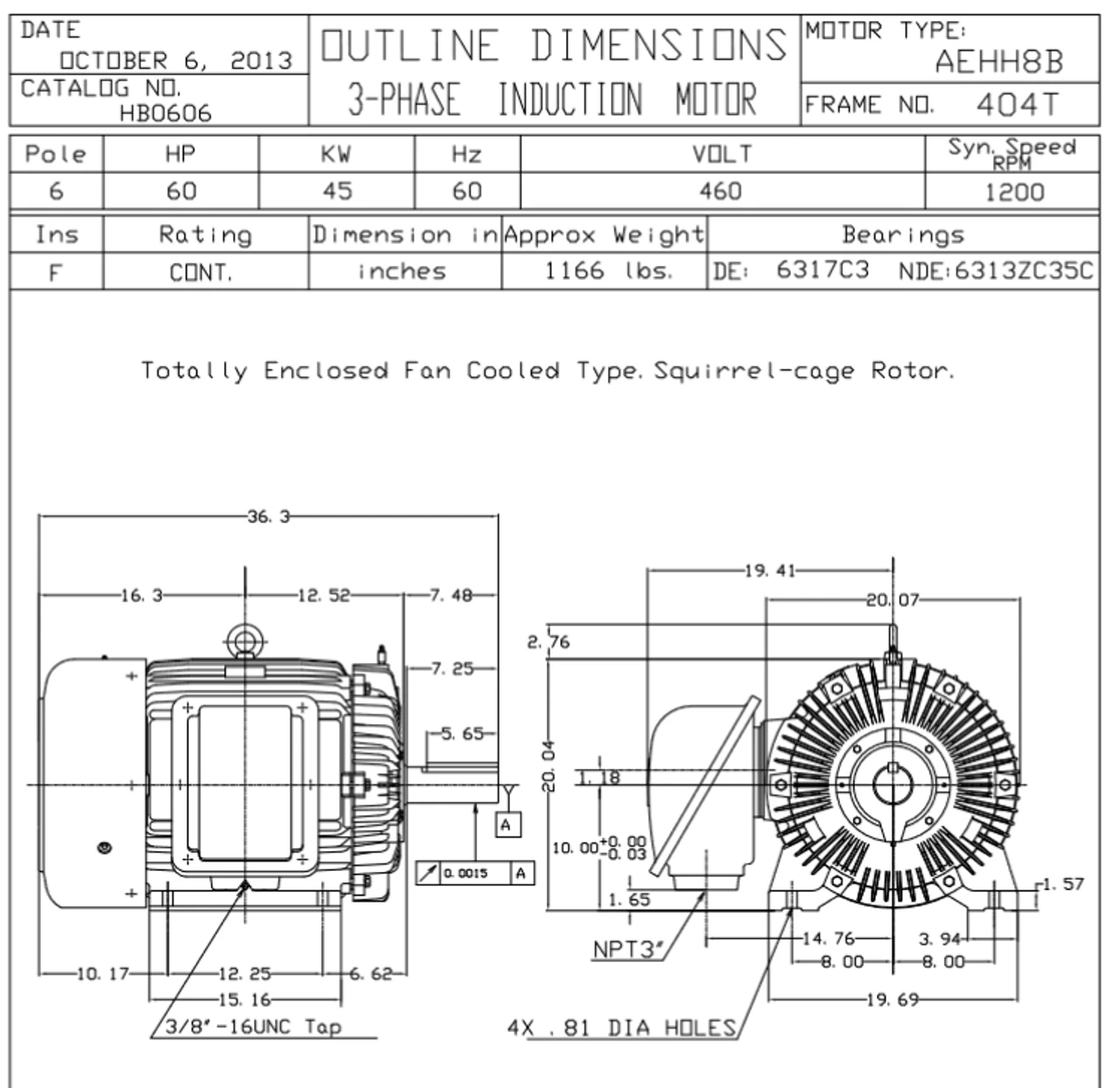 - Inverter Duty Speed Range: 20:1 Variable Torque, 10:1 Constant Torque