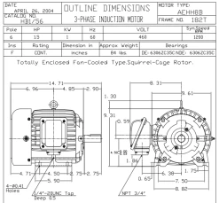 - 1 1/2 hp 1200 RPM, 2.53 amps 460 Volts 60 Hz Three Phase
