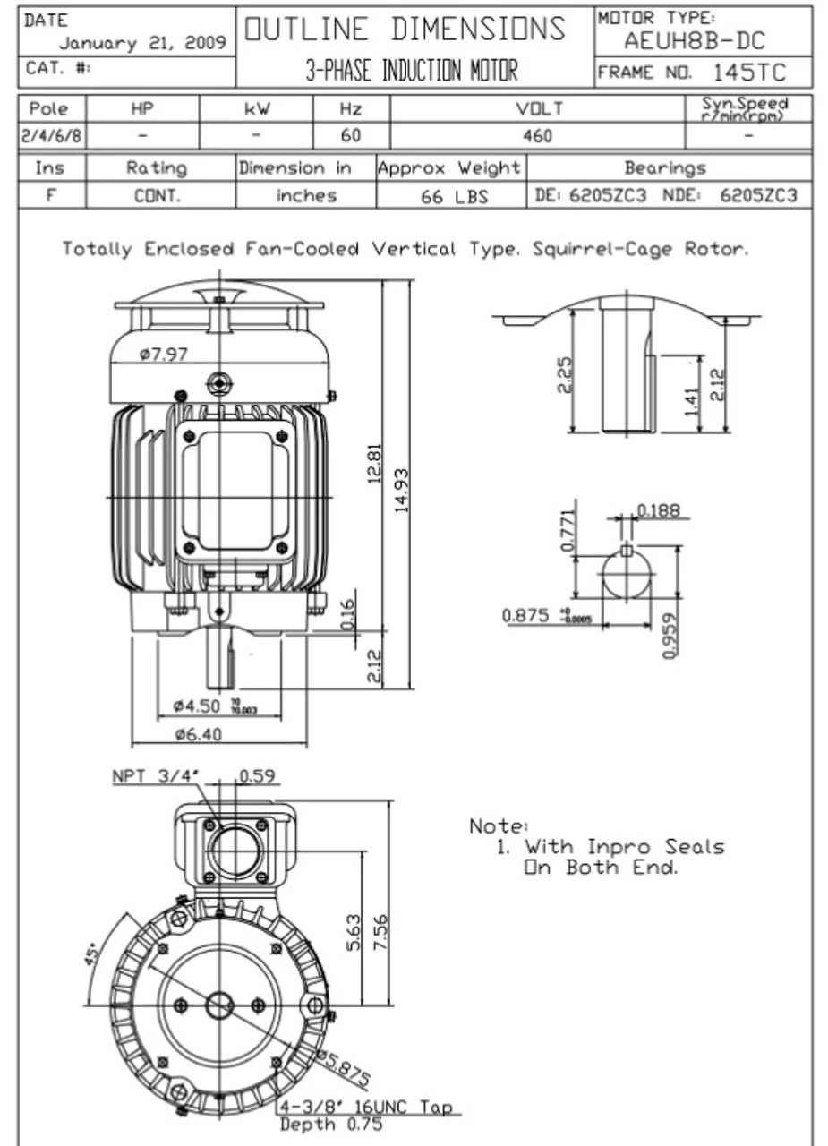 - Inverter Duty Speed Range: 20:1 Variable Torque, 10:1 Constant Torque