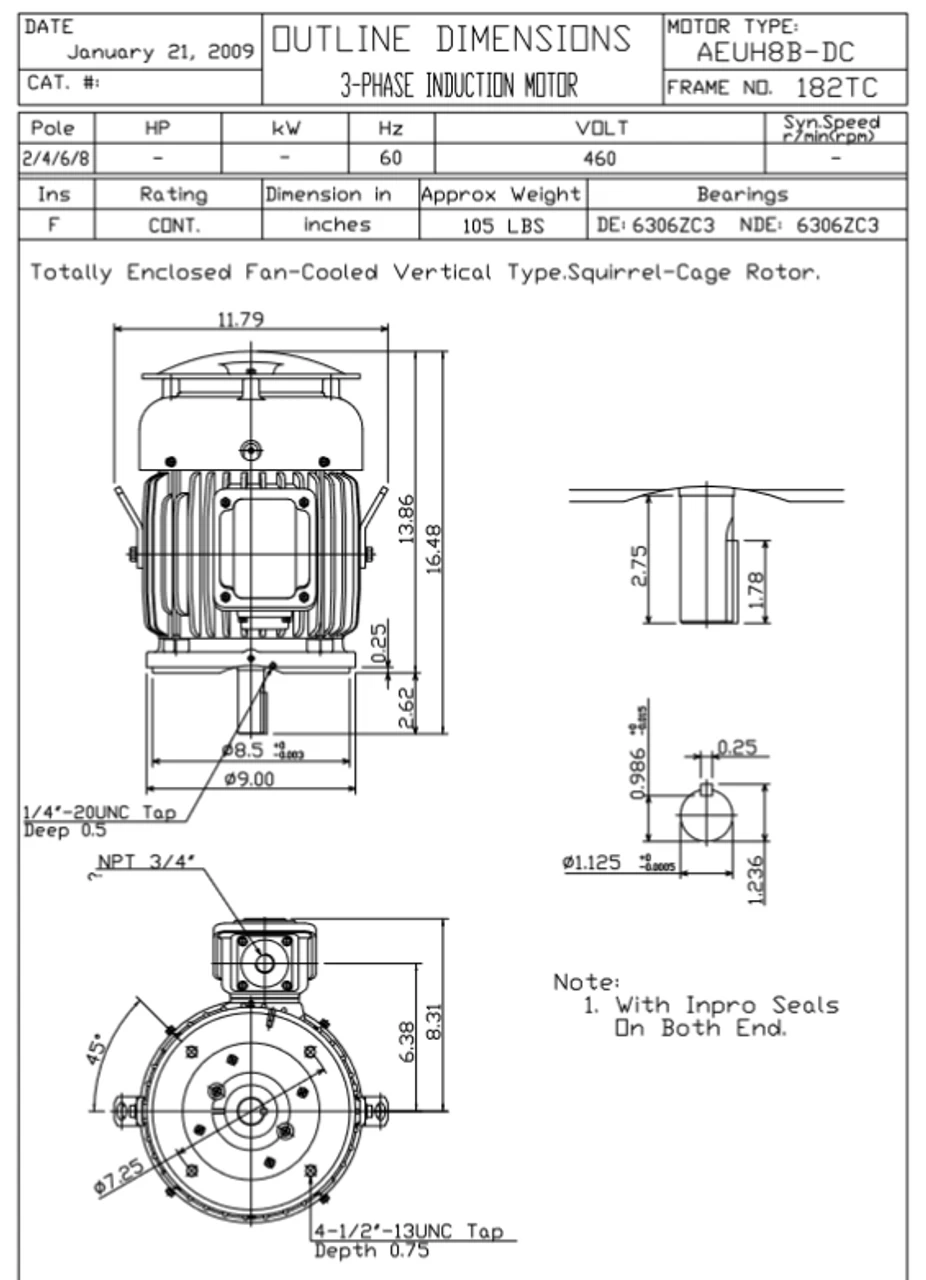 - Inverter Duty Speed Range: 20:1 Variable Torque, 10:1 Constant Torque
