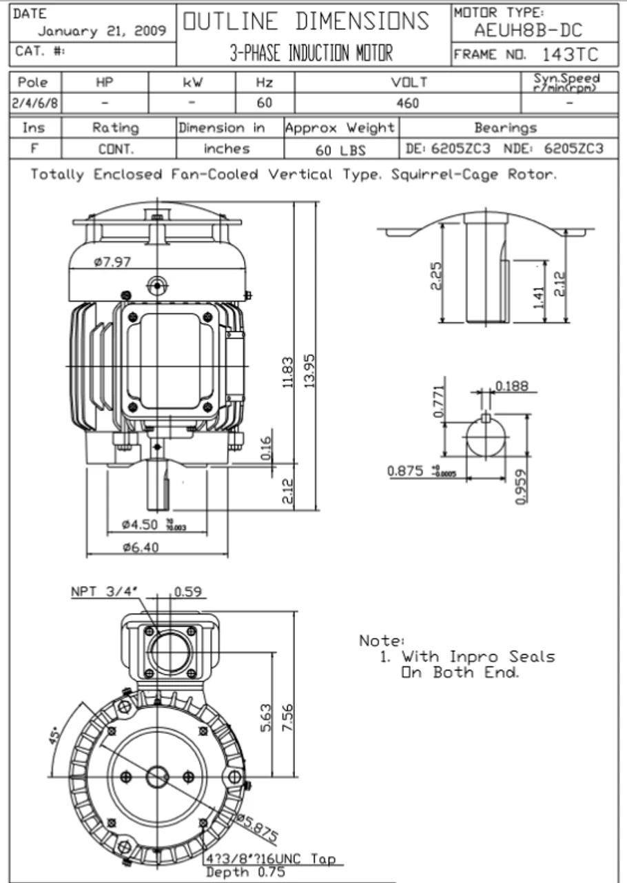 - Inverter Duty Speed Range: 20:1 Variable Torque, 10:1 Constant Torque
