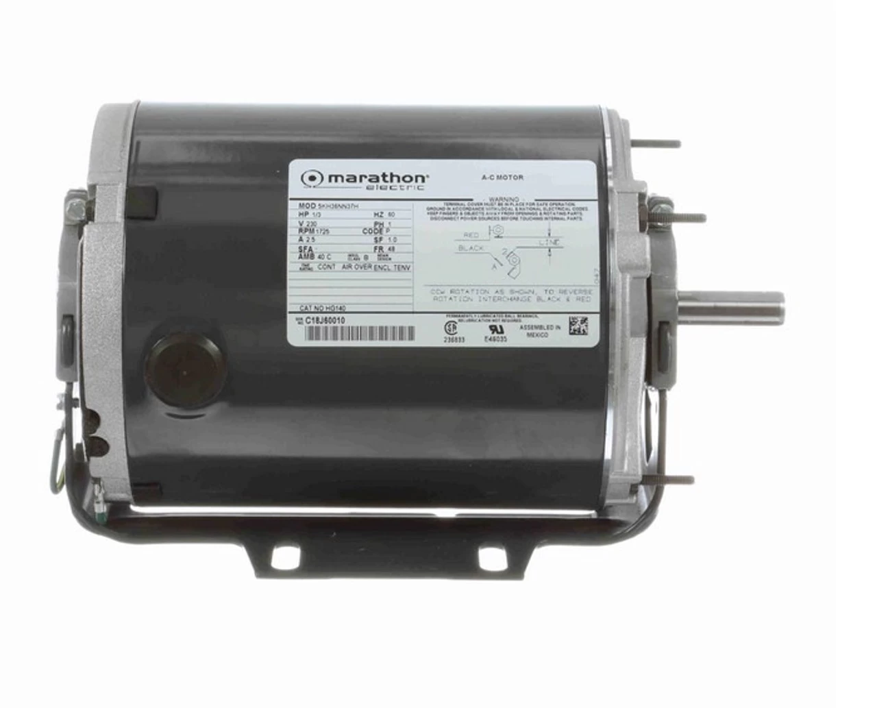 - 1/3 hp 1800 RPM, 2.5 amps, 230 Volts 60 Hz. Split Phase