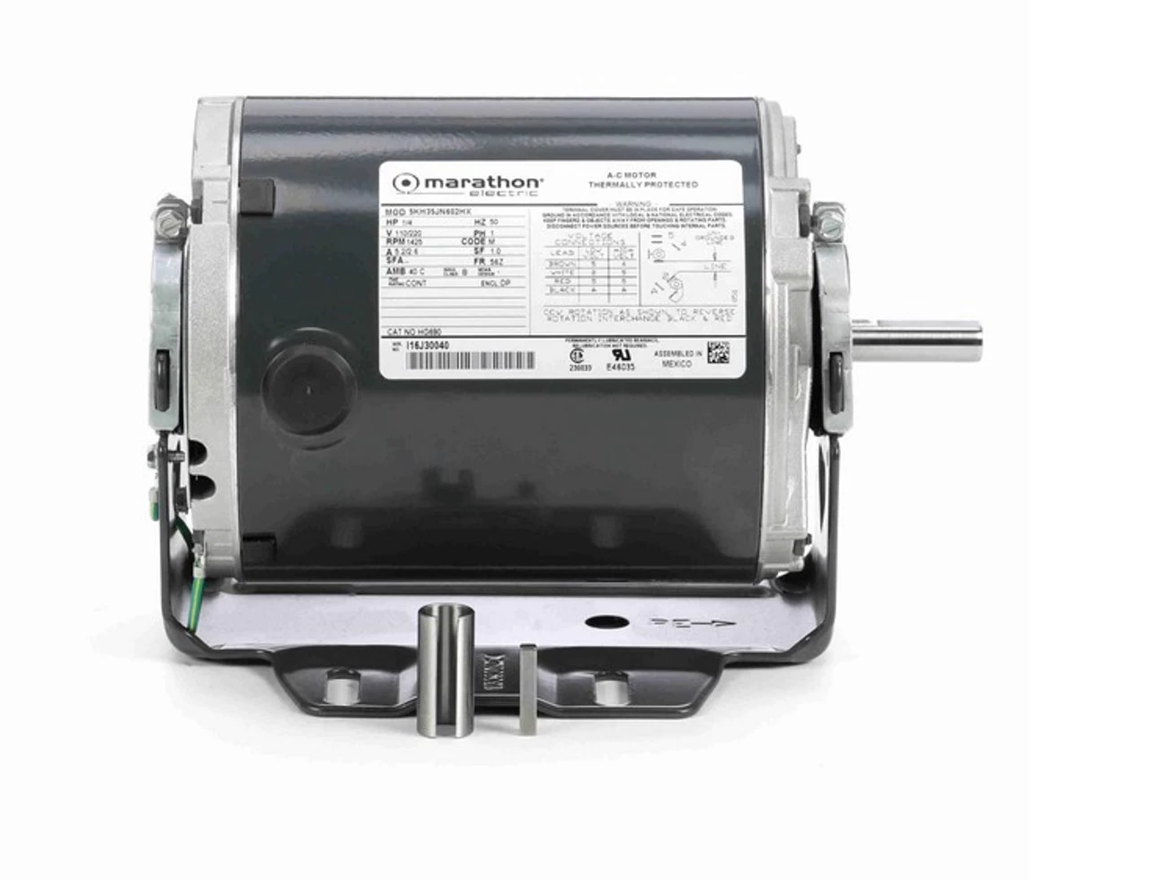 - 1/4 hp 1500 RPM, 5.2, 2.6 amps, 110/220 Volts 50 Hz, Split Phase