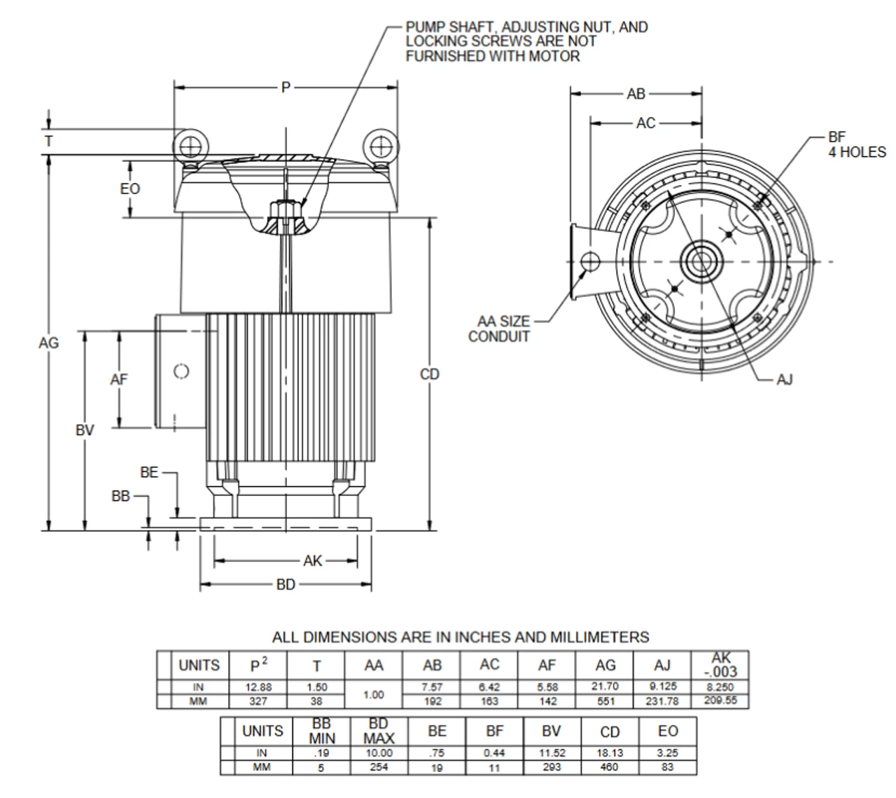 - NEMA 213TP Frame, AUS type, 10″ Dia. Base