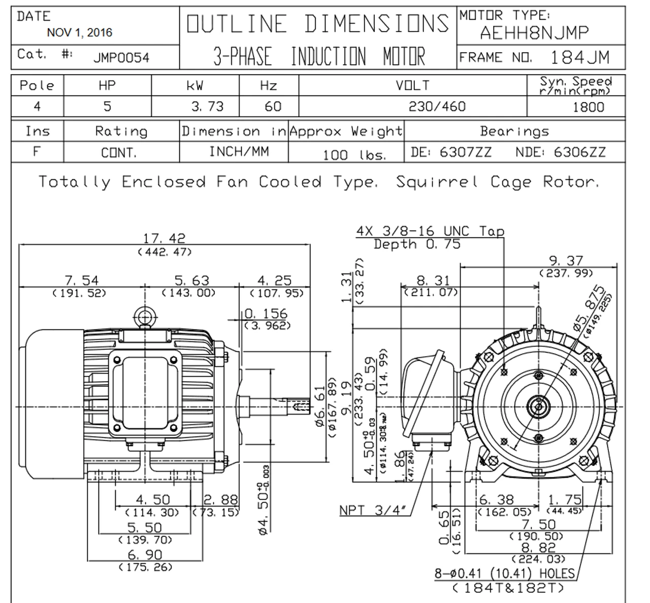 - Suitable for Inverter Use per NEMA MG-1 Part 31.4.4.2
