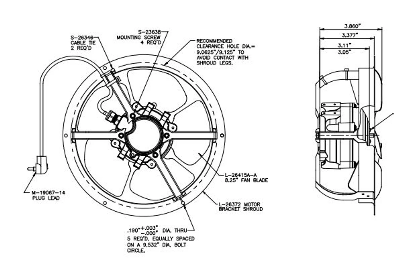 - Mounting Bracket 9.532″ Diameter Bolt Circle