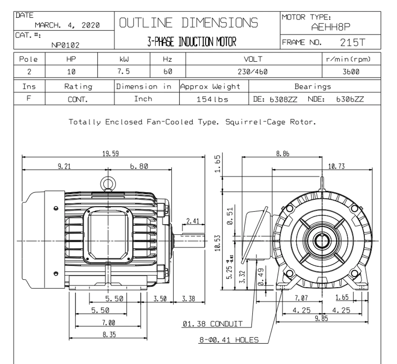 - Cast Iron Construction, Enclosure: Totally Enclosed Fan Cooled (IP54)