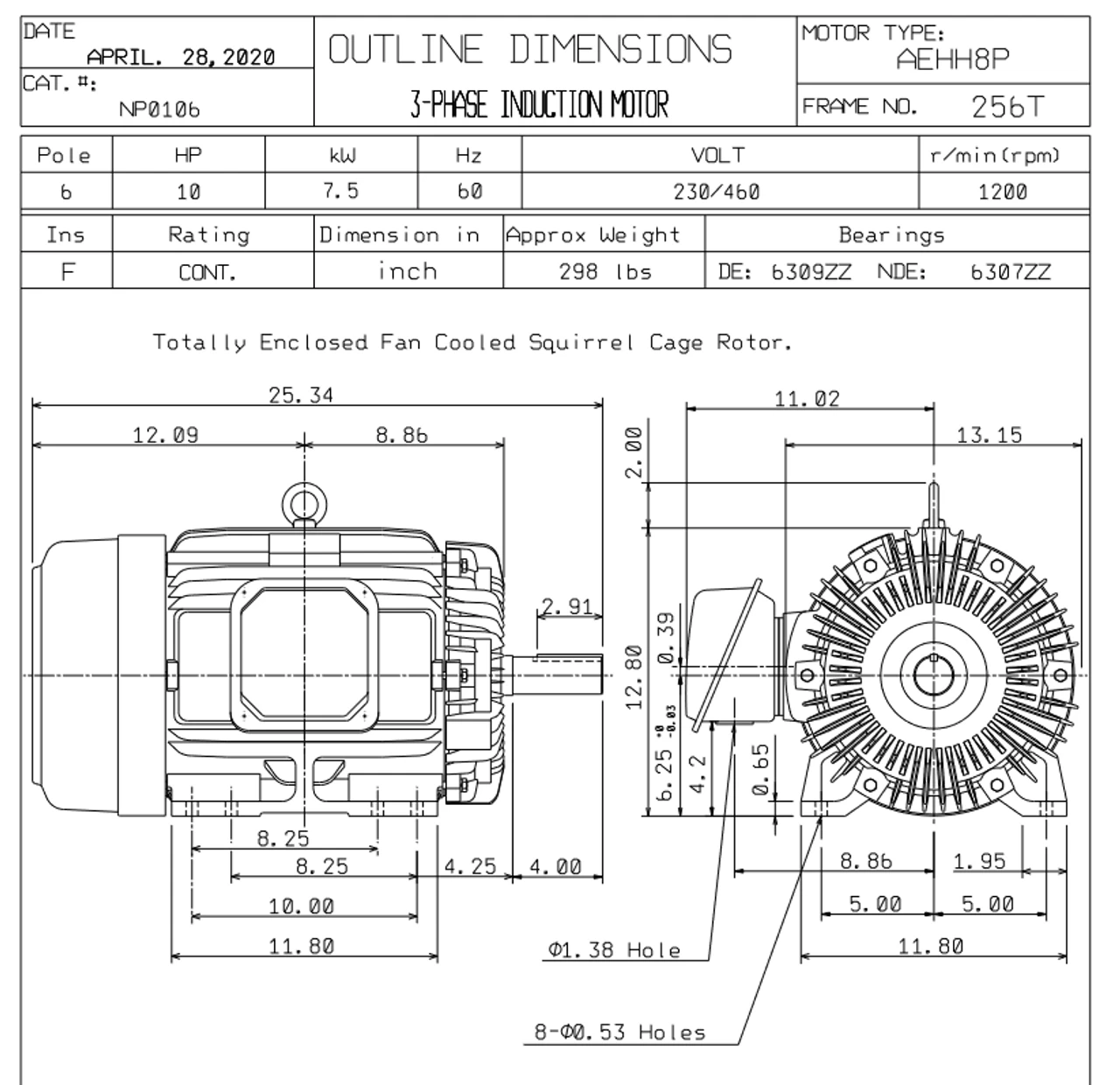 - Cast Iron Construction, Enclosure: Totally Enclosed Fan Cooled (IP54)