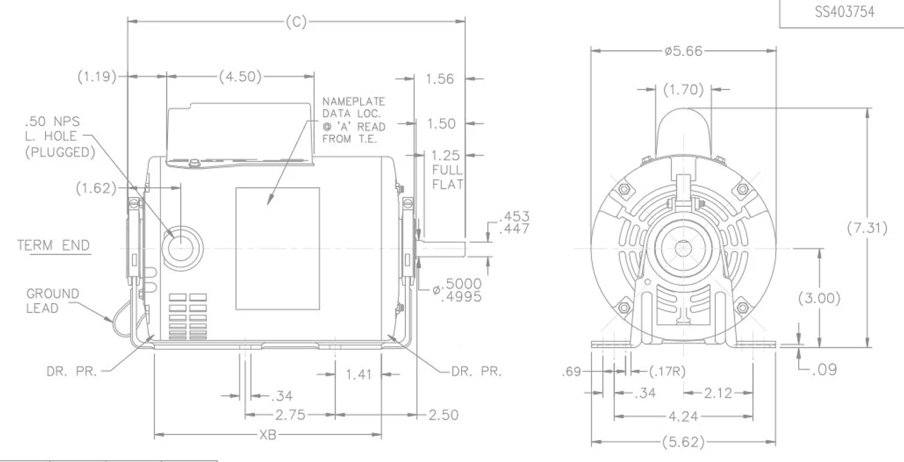 - NEMA 48 Frame Keyed Shaft 1 1/2″ x 1/2″ Diameter, 1 speed