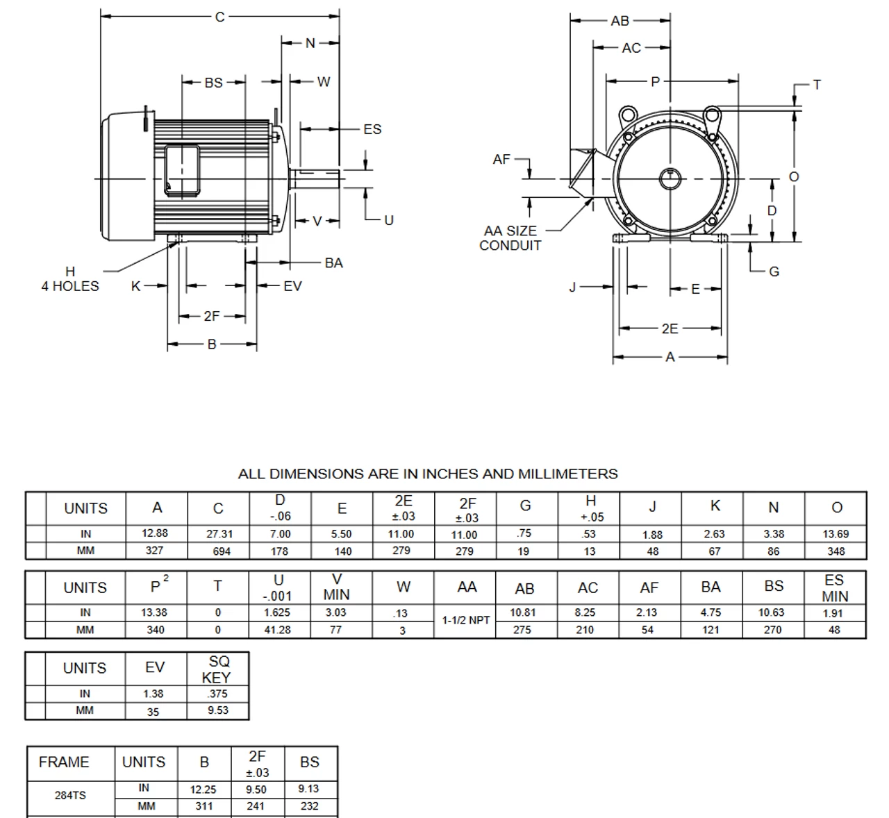 - NEMA 284TS frame Keyed Shaft 1 5/8″ Diameter x 3 1/4″