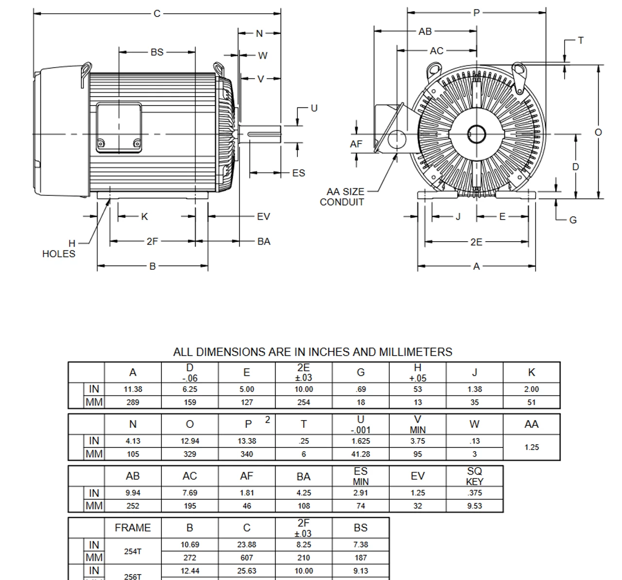 - NEMA 254T frame Keyed Shaft 1 5/8″ Diameter x 4″