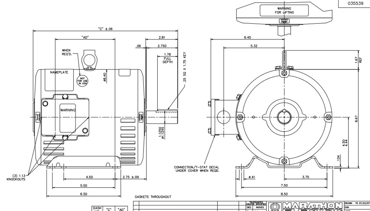 - NEMA 184T Frame, Shaft 2 3/4″ x 1 1/8″ Diameter, 2 speed