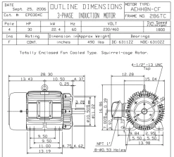 EP0304C TECO Westinghouse 30 Hp 1800 RPM 286TC Cast Iron 230/460V TEFC Severe Duty 3-Phase Motor